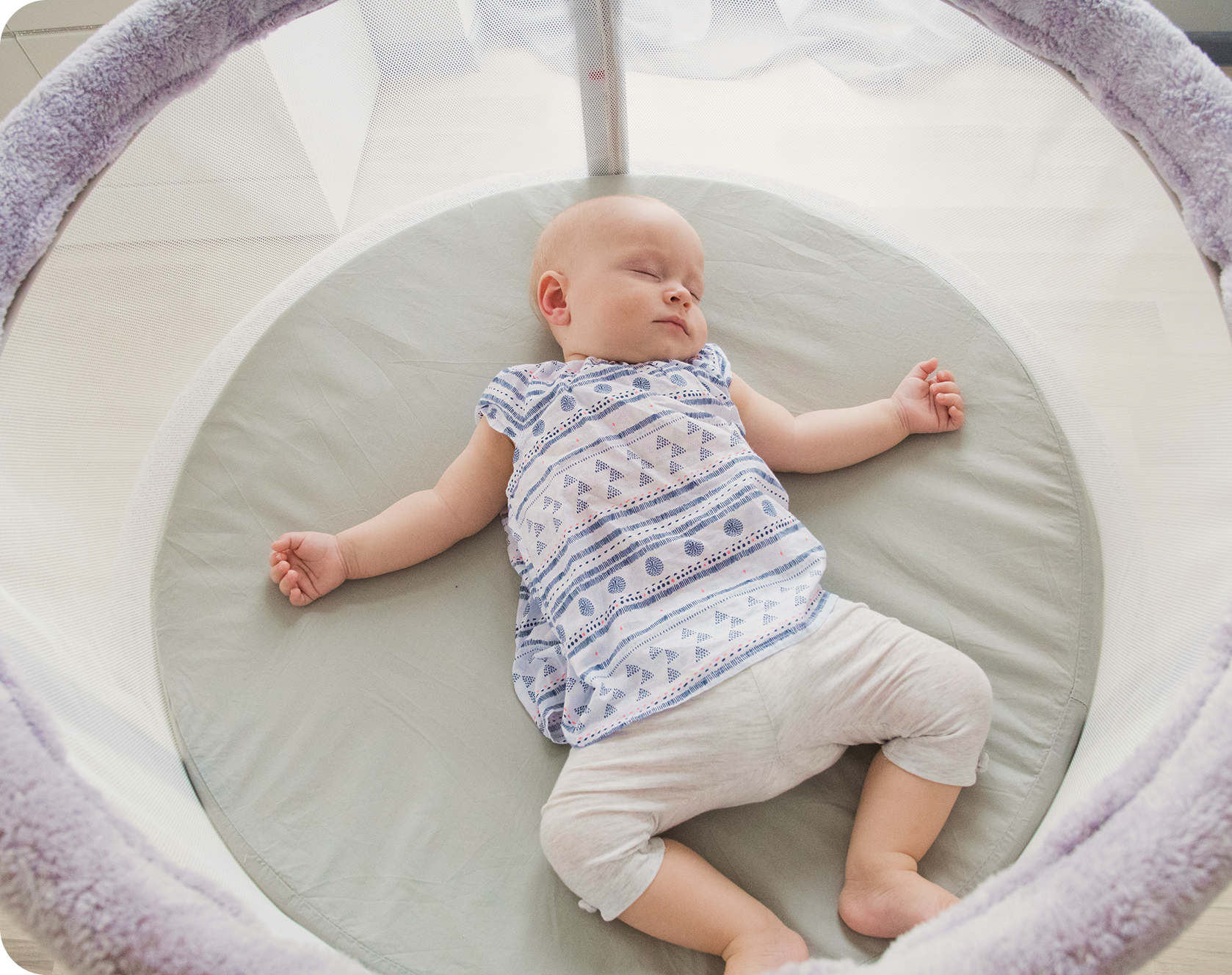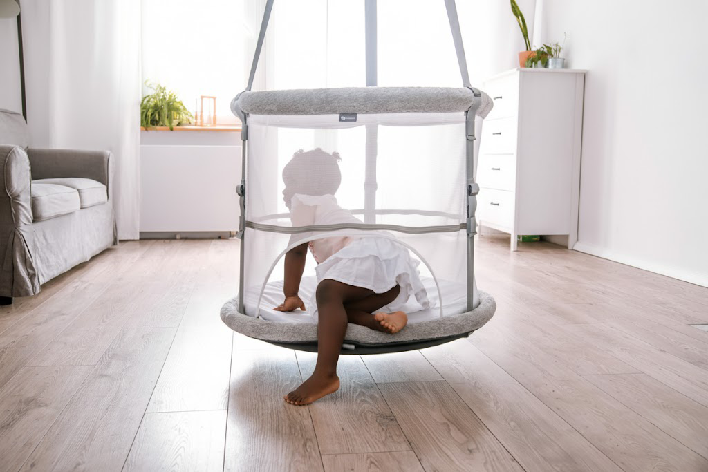 Die Bauchlage in der Memola ist ein völlig neues Erlebnis: Dein Kind kann die Welt um sich herum beobachten und versetzt die Wiege durch seine Neugier selbst in sanfte Bewegung. Das stärkt ganz natürlich die Rumpfmuskulatur und fördert spielerisch die Stabilität und Koordination.