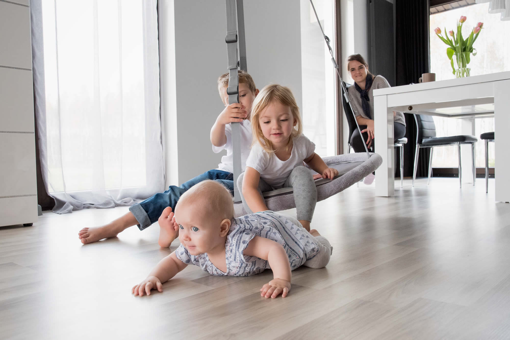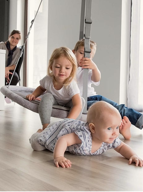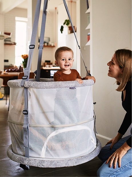 Dank ihrer perfekt ausbalancierten Konstruktion kann Dein Baby die Memola durch eigene Bewegungen selbst in Schwingung versetzen. Das schenkt Dir wertvolle Momente der Ruhe, während es Deinem Kind hilft, die Tiefenwahrnehmung (Propriozeption) zu entwickeln und den eigenen Körper spielerisch zu entdecken.