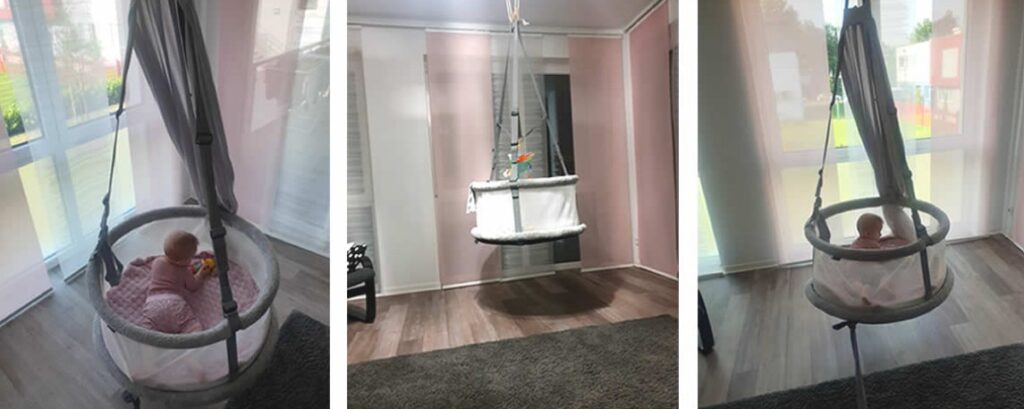 Das Baby kann darin liegen und auch Geschwisterkinder können es schaukeln und mit ihm spielen. Durch das Netzteil ist das Baby darin gesichert. Was auch sehr überzeugend ist, ist der vielfältige Einsatzbereich der Memola. Sie wächst stetig mit und Geschwisterkinder können sie auch mitbenutzen. Von uns eine klare Kaufempfehlung.