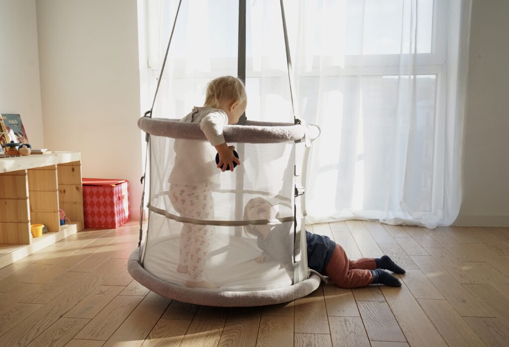 „Da die Memola hängt und nicht auf dem Boden steht, kann das ältere Geschwister dem Baby beim Hineinschauen nicht aus Versehen wehtun.“ — Mama von Filip