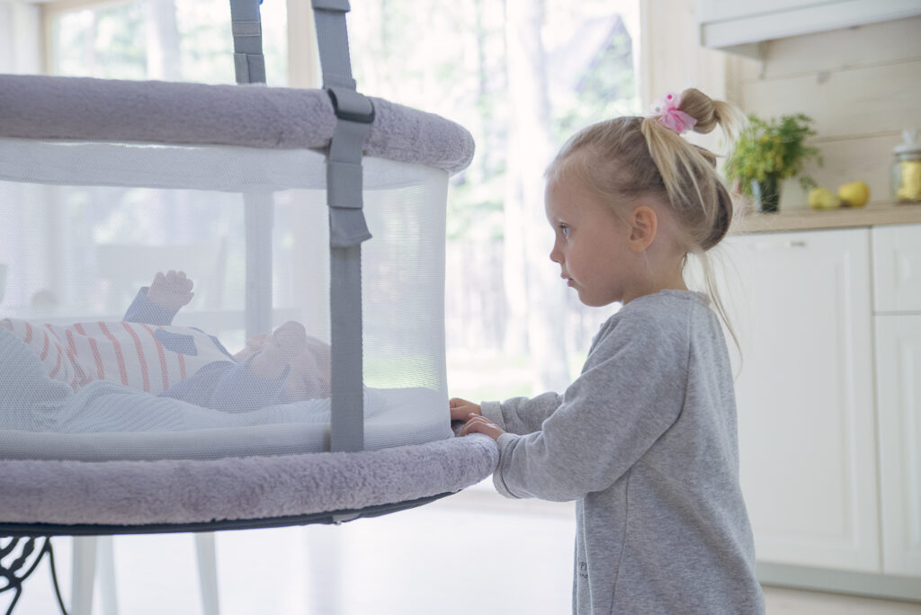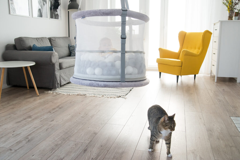 In einem Haus mit Hunden, Katzen oder älteren Geschwistern suchen Eltern oft nach einer „sicheren Insel“ für das Neugeborene.