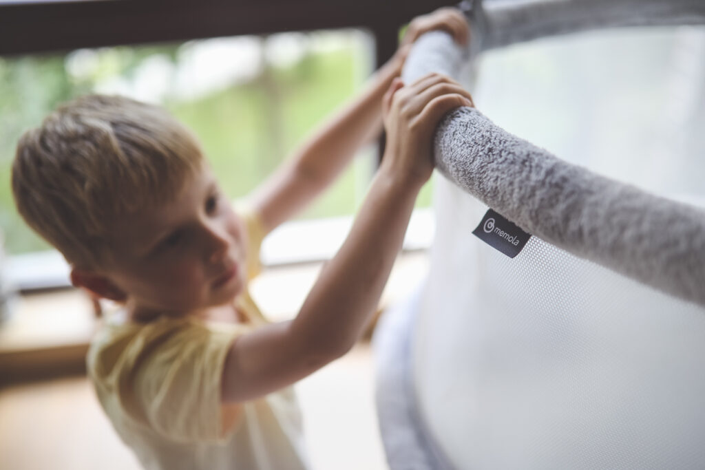„In der Memola hat mein Sohn ruhig geschlafen, und ich konnte jederzeit zu ihm hinüberschauen. Je älter er wurde, desto stärker wurde sein Bedürfnis, die Umgebung zu beobachten – die Memola hat ihm das perfekt ermöglicht. Durch das Netz war er immer mitten im Geschehen und sah, was um ihn herum passiert.“ — Joanna S., Mama