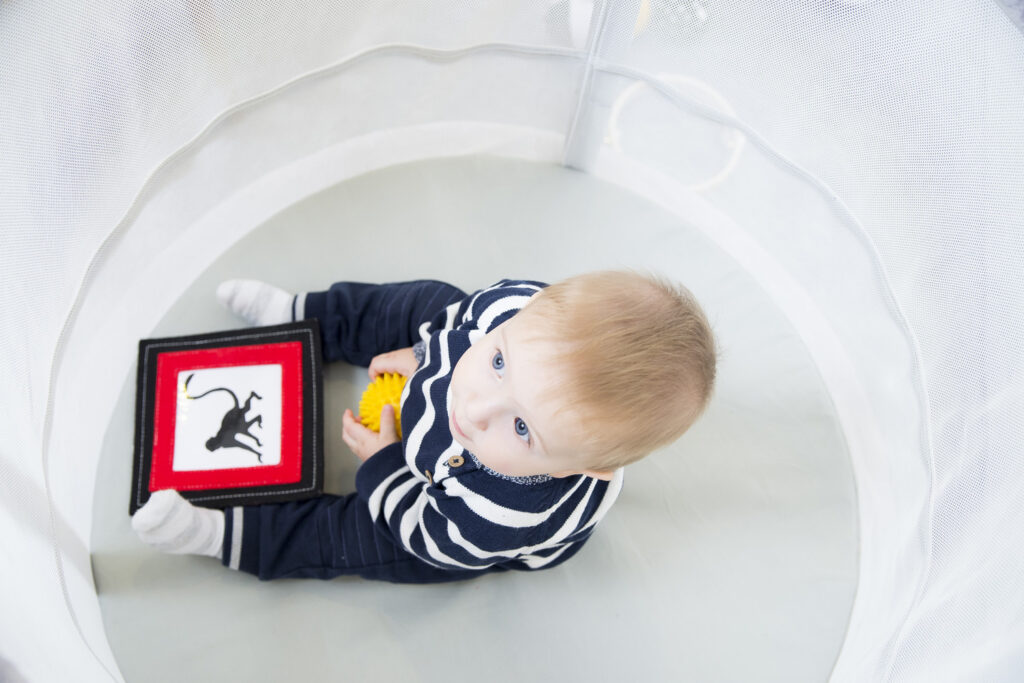 In der Memola ruht das Kind nicht nur – es durchläuft jeden Tag ein intensives, wenn auch „stilles“ Orientierungstraining. Es lernt, wo sein Körper endet, wie es sein Gewicht verlagert und wie es in der Bewegung Stabilität findet. Es ist genau diese Tiefenwahrnehmung (Propriozeption), die das Selbstvertrauen aufbaut, das Sie später bei jedem Schritt, jedem Sprung und jeder geschickten Bewegung Ihres Kindes sehen werden.