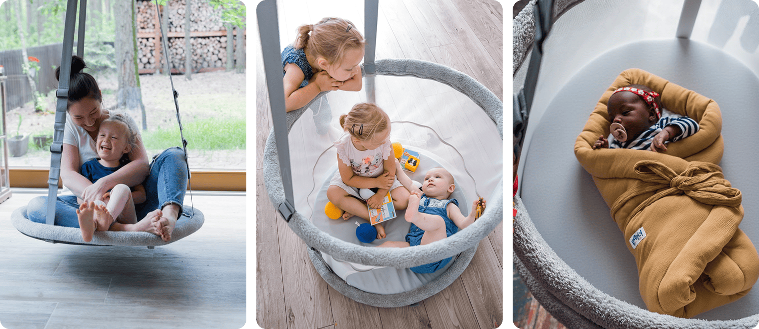 „Die Memola hat viele Vorteile. Einer davon sind ihre therapeutischen Eigenschaften: Wenn das Kind beim Schaukeln auf dem Bauch liegt oder sitzt, muss es mit den Muskeln des ganzen Körpers arbeiten, um seine Position zu halten.“ — Filips Eltern
